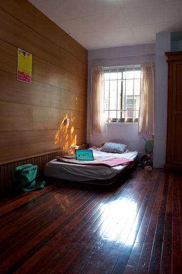 Slechts gescheiden door een stuk karton (dat in dit land blijkbaar doorgaat als muur) hoor ik ‘s nachts zelfs het allerlaatste zuchtje onregelmatige ademhaling dat Huisgenoot M uitpuft voordat haar ademhaling omslaat in de regelmaat van de slapende geest. En nog vóórdat haar wekker ook maar een eerste piep laat horen, wordt ik al wakker van de korte vibratie die het apparaat maakt teneinde aan te kondigen dat het binnen afzienbare tijd luidruchtig zal beginnen te blèren.